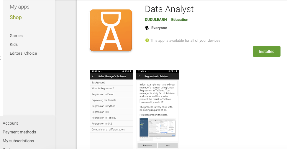 Data Analyst App enables you to sharpen your data analysis skills on the go.